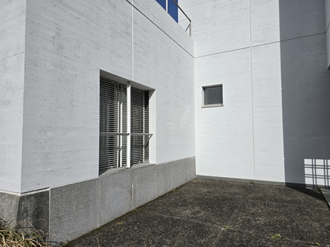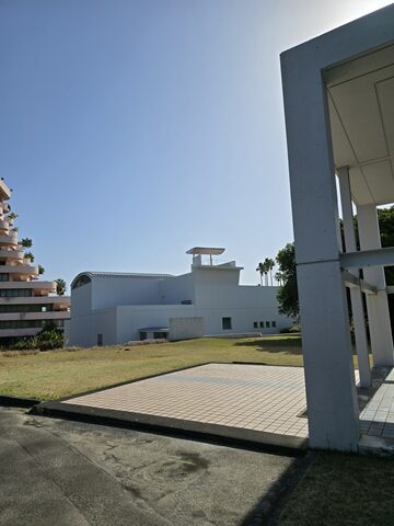 修繕が行われ新築時の雰囲気が復活した。コンクリートの打ち放しに白の塗装を施した外壁は時の経過を感じさせながらも、強い太陽の光、青い空や海、深い植物の緑にくっきりと浮かび上がる。