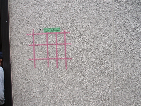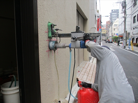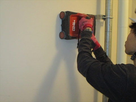 コンクリートコア採取場所、鉄筋かぶり厚さ測定箇所の指定を朝一番に行う。図面上で想定していても現場で位置を変えたほうが良い場合があり、職人さんと相談し適時変更していく。