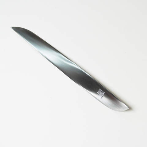 かなり昔にこんな素材をひねった文具を見たことがあったような気がしていた。ようやくわかったのがこれ。エンツォ・マーリのペーパーナイフ。「アメランダ」と名付けられた美しい曲面の作品。1962年ステンレス製。いまでも結構人気があるとのこと。