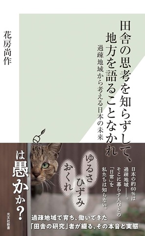 著者は「日本の国土に占める過疎地域の割合は約60%。「田舎は危機的状況にある」「過疎地域は悲惨」――。「田舎=過疎地域」にはネガティブな言説が付いてまわる。しかし、こうした言説の多くは「都心の思考」で発信され、「都市部の都合」を田舎に押しつけている。だが、田舎は本当に悲惨なのか? 都会の思考とは異なる合理性に裏打ちされた「田舎の思考」を明らかにし、過疎地域で暮らす人びとの日常を通して日本の未来を考える」と書く。