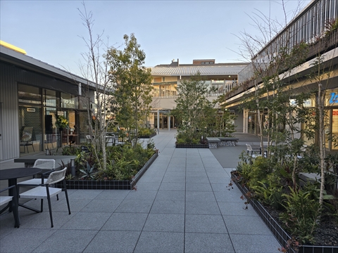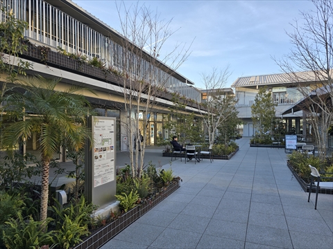 2階は人工台地というか中庭のようなテラスが中央にあり